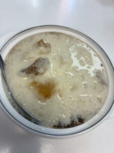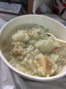 午前中は中国語の授業90分×2。この日も午後から自由時間。ランチはいつも朝ごはんを食べに行ってるお店でハンバーガーみたいなの。他の学生さんはみんなおでかけだけど、私は寮でゆっくりお休み。夕食は昨日と同じお粥のデリバリー。香港風のお粥でこれが美味しくてね。