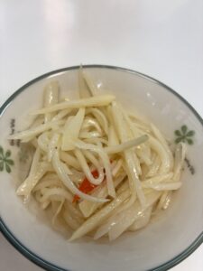 午前中は大学内で調理実習。台湾風焼きビーフン、肉団子と大根のスープを作る。これがランチに。午後から中国語授業90分×2。授業が終わってから学内のカフェでつきちゃんと再び会う。豆花が美味しい。帰りに夕食用の水餃子をテイクアウト。カフェのマスターにジャガイモのお料理をサービスしてもらう。美味しい。