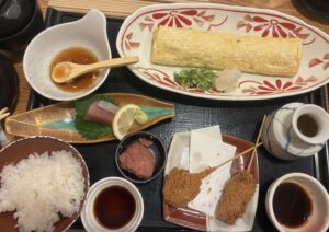 まずはグランフロントのたちばなさんて和食屋さんで。半個室を予約してくれてたので、ここでゆ~っくりお食事。ざる豆腐が出て、その後さらに出汁巻き卵をメインとした御膳。とーってもおいしゅうございました。