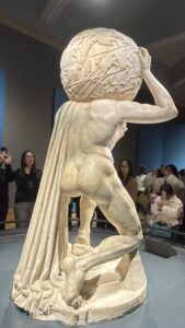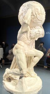 ほら、万博のイタリア館で展示されていた天空のアトラスが展示されているのよ。私、ものすごーーーく観たかったのよ。けど予約のチケットは即完売でね。泣いてたんだけど当日券が出るって聞いたもんで…。