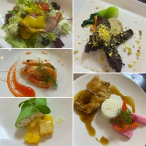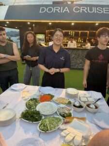 私達は参加しなかったけど、カヤック乗りやイカ釣り、カラオケパーティなんかもあります。お料理教室(生春巻きを作った)、サンセットのバータイムや朝日を浴びながらの太極拳には参加しましたよ。ずっと曇り空が続いていたのですが、おかげで暑くもなく寒くもなく快適な気温。奇跡的に夕日も朝日も堪能することができました。それはホントに息をのむほど美しく。もう感動の連続!
